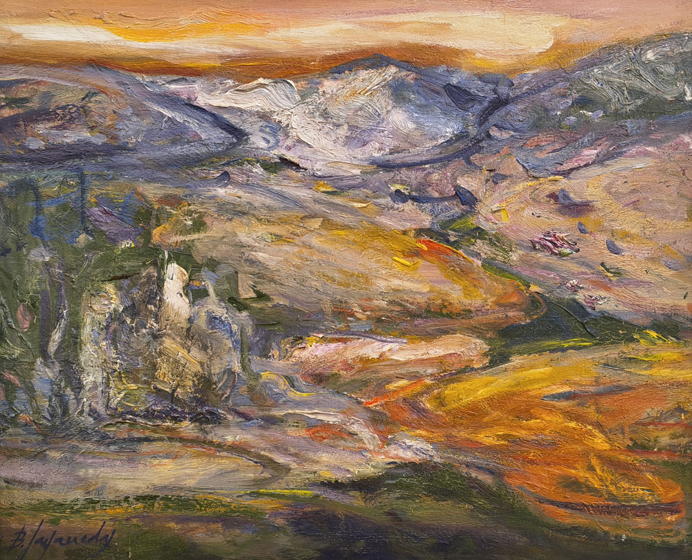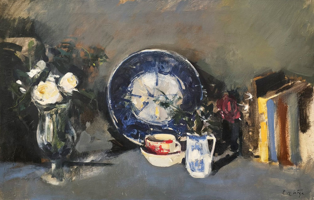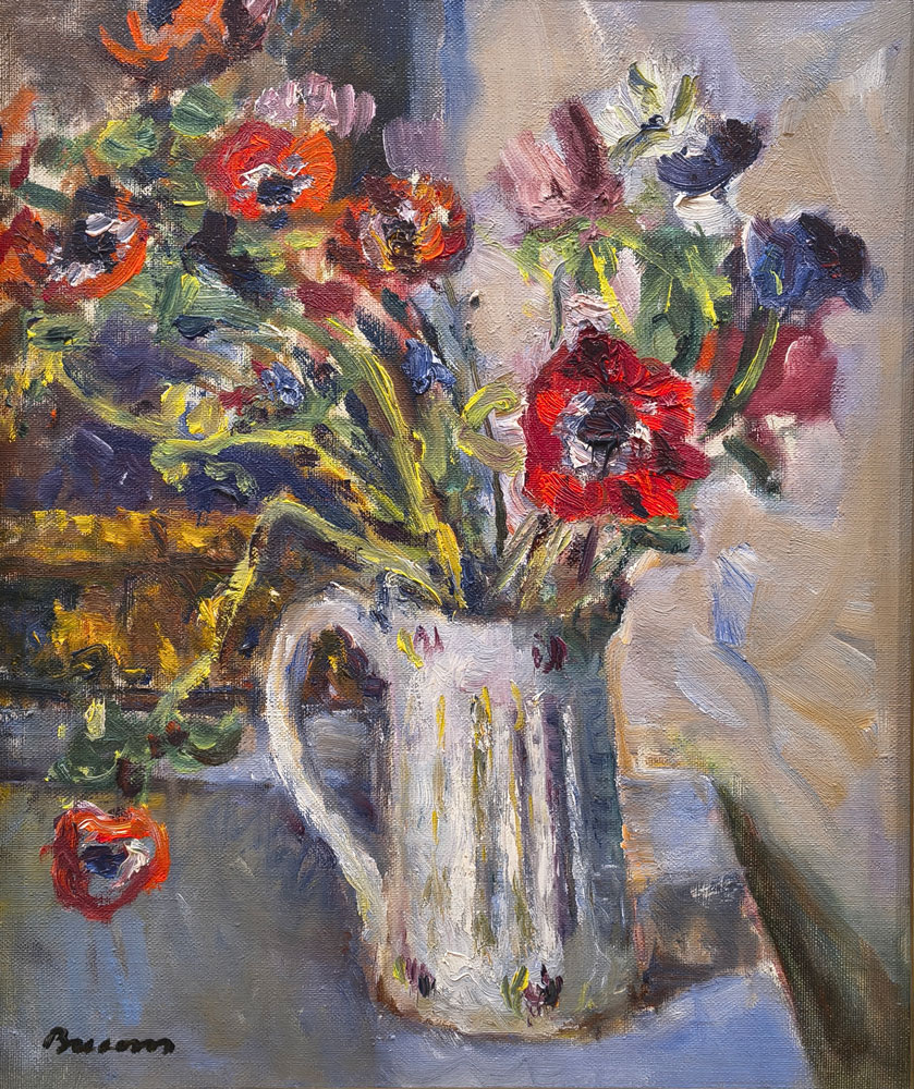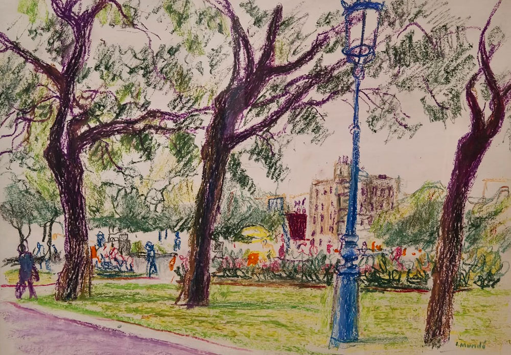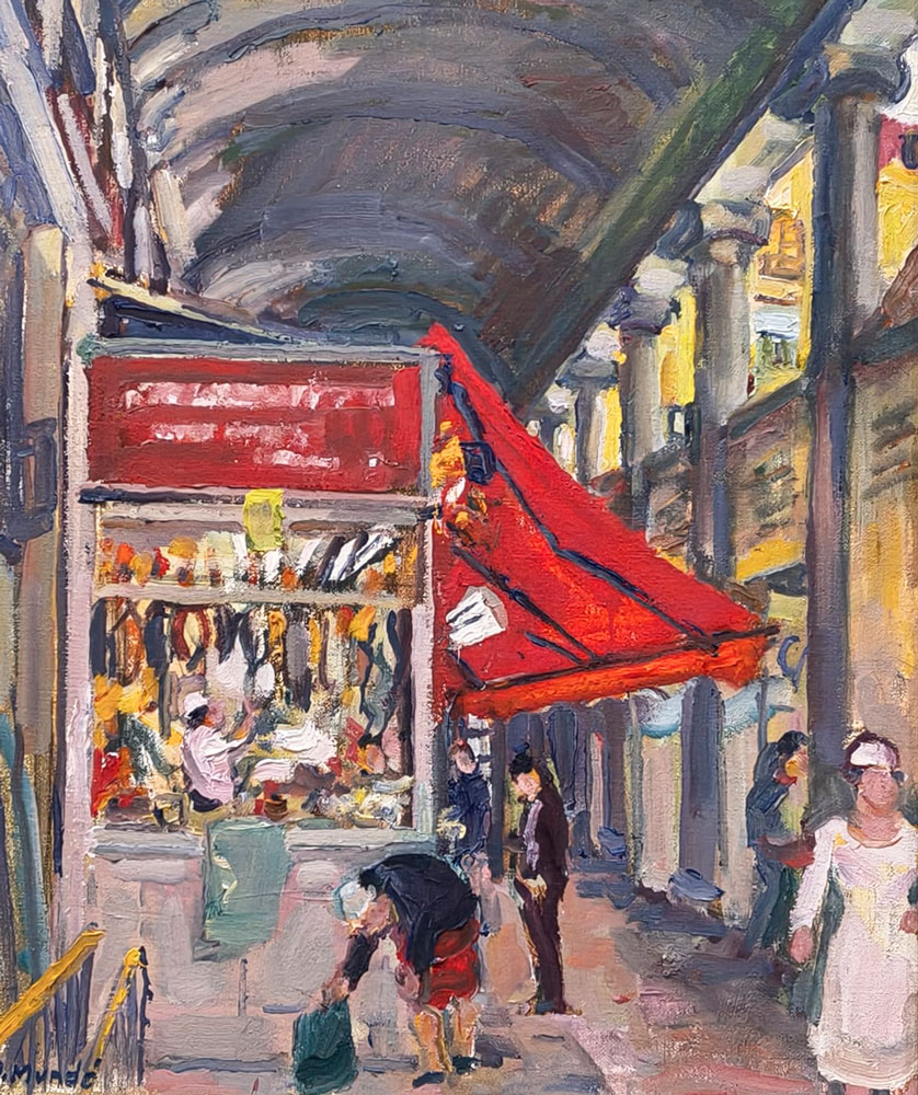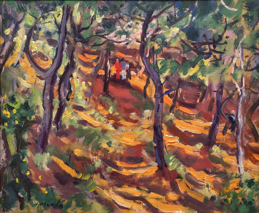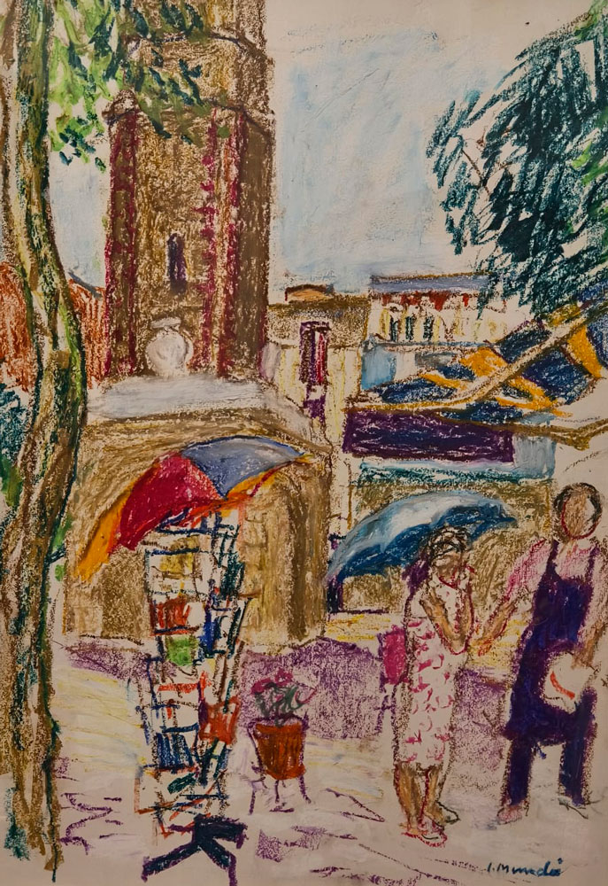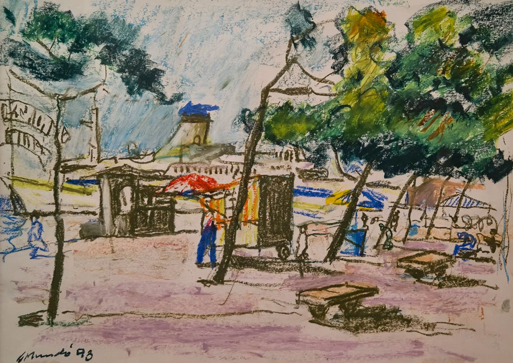 BENET SARSANEDAS – SIMO BUSOM – JOAN CAPELLA – KOYAMA – JOSEP MOSCARDO – POMES – RUIZ ORTEGA – Quatre decades: Memoria i presencia 12 MARç – 7 ABRIL 2026 1. BENET SARSANEDAS PAISATGE DEL SUD Oli/tela, 60×73 cm 2. BENET SARSANEDAS EL CINGLE D’AIYATS Oli/tela, 65×81 cm 3. BENET SARSANEDAS DARO D’EMPORDA Oli/tela, 38×46 cm 4. BENET SARSANEDAS PAISATGE Oli/tela, 54×65 cm 5. BENET SARSANEDAS BOSCATGE Oli/tela, 60×73 cm 6. POMES EL DIC SEC. PORT BARCELONA Oli/tela, 50×61 cm 7. POMES OBRES. COLON Oli/tablex, 38×46 cm 8. POMES PARIS Oli/tablex, 38×46 cm 9. POMES PORT DE BARCELONA Oli/tela, 60×73 cm 10. CAPELLA LA COPA DE VI Oli/tela, 55×46 cm 11. CAPELLA EL PORT Gouache/paper, 35×49 cm 12. JOSEP MOSCARDO PASSATGE PERMANYER Oli/tela, 60×73 cm 13. JOSEP MOSCARDO MONESTIR DE SANT CUGAT Oli/tela, 116×89 cm 14. JOSEP MOSCARDO MERCAT DEL DIJOUS Mixta/paper, 75×52 cm 15. JOSEP MOSCARDO TRAMVIA EN GRISOS Mixta/paper, 53×70 cm 16. BUSOM ANEMONES Oli/tela, 46×38 cm 17. BUSOM LA CARENA AL MATI. PORT DE LA SELVA Oli/tela, 60×73 cm 18. BUSOM FOBALABACHE I CASES. PANTICOSA Oli/tela, 60×73 cm 19. BUSOM INTERIOR ESTUDI AMB DRAP VERMELL Oli/tela, 100×81 cm 20. MUNDO CANSALADERIA Oli/tela, 55×46 cm 21. MUNDO SOTABOSC Oli/tela, 46×55 cm 22. MUNDO NOI LLEGINT Pastel gras/paper, 37×45 cm 23. MUNDO PLAçA CATALUNYA Pastel gras/paper, 32×45 cm 24. MUNDO PLAçA RIUS I TAULET Pastel gras/paper, 45×32 cm 25. MUNDO PORT DE BARCELONA Pastel gras/paper, 33×45 cm 26. KOYAMA EL PENI II. CADAQUES Oli/tela, 60×73 cm 27. KOYAMA RUFI. CADAQUES Oli/tela, 46×55 cm 28. KOYAMA MUNTANYA NEGRA I. CADAQUES Oli/tela, 38×46 cm 29. KOYAMA SARG. CADAQUES Oli/tela, 100×100 cm 30. RUIZ ORTEGA FLORS AMB PLAT BLAU Oli/tela, 60×92 cm